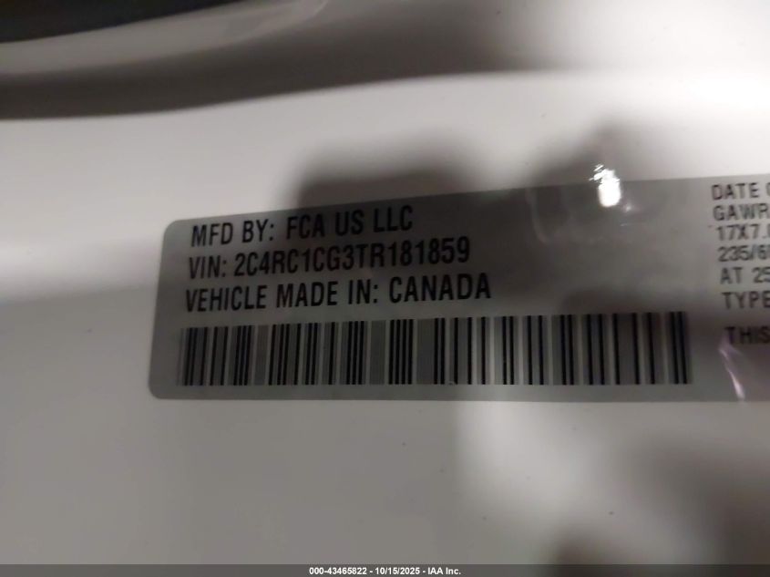 Цвет БелыйЦилиндры 6Привод Передний приводVIN 2C4RC1CG3TR181859Состояние Заводится и едет (проверено)Повреждения Нет