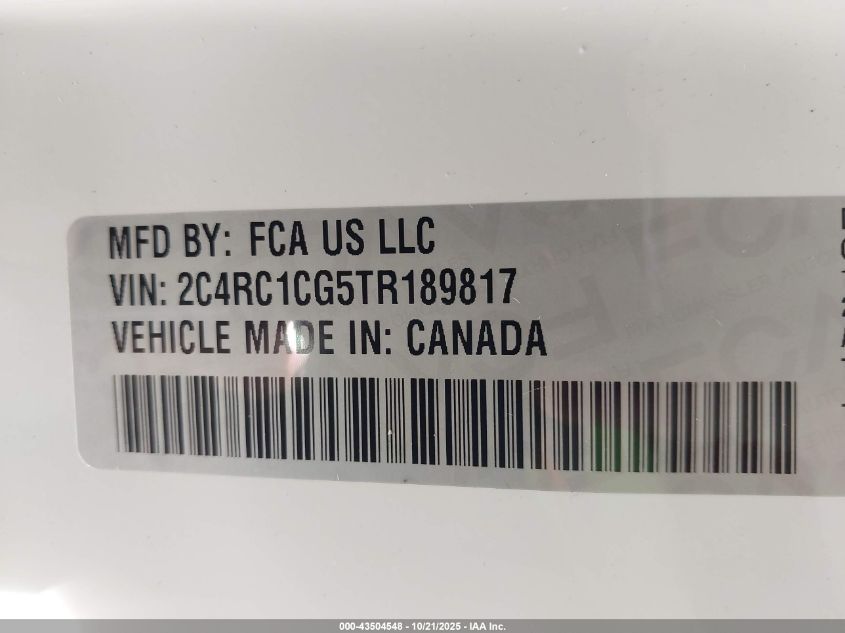 Цвет БелыйЦилиндры 6Привод Передний приводVIN 2C4RC1CG5TR189817Состояние Заводится и едет (проверено)Повреждения Нет