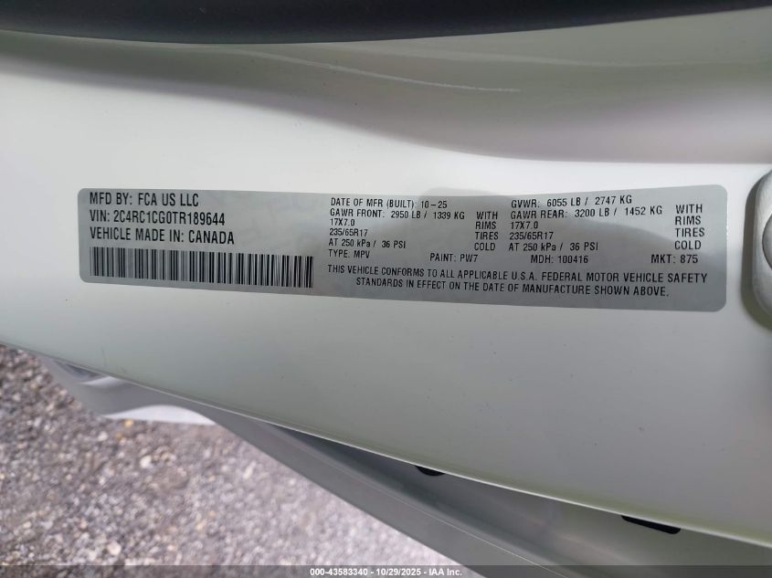 2026 CHRYSLER VOYAGER 2026 року Бензин, 3.6, Передний привод, vin - 2C4RC1CG0TR189644 из США