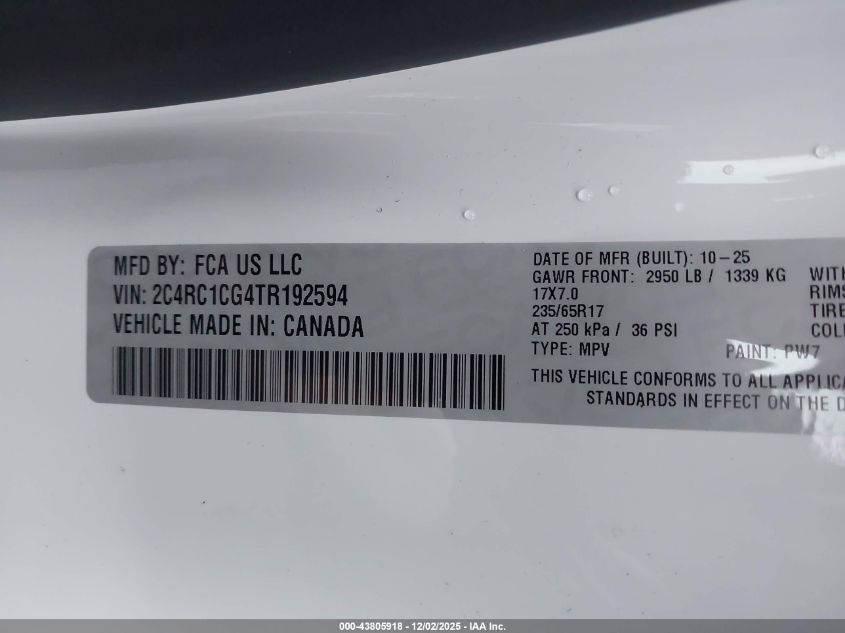 Цвет БелыйЦилиндры 6Привод Передний приводVIN 2C4RC1CG4TR192594Состояние Заводится и едет (проверено)Повреждения Нет