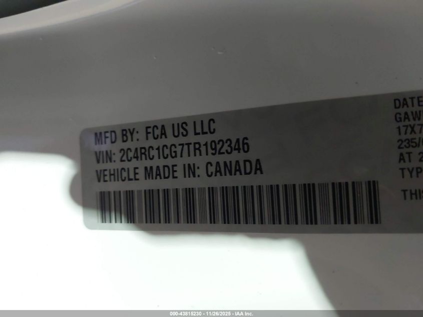 Цвет БелыйЦилиндры 6Привод Передний приводVIN 2C4RC1CG7TR192346Состояние Заводится и едет (проверено)Повреждения Нет