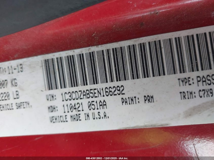 Цвет КрасныйЦилиндры 4Привод Передний приводVIN 1C3CDZAB5EN166292Состояние СтационарноПовреждения Обычный износ AutoRIA