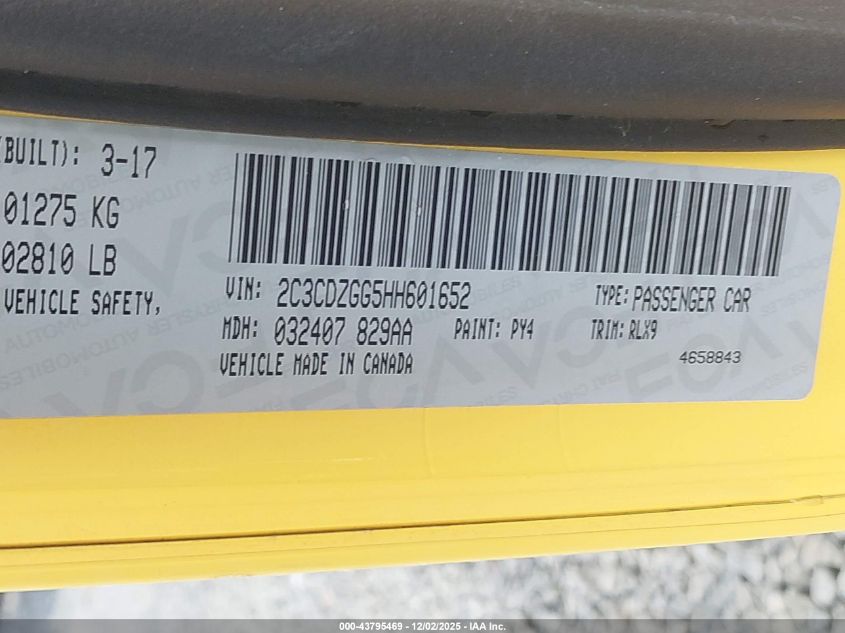 2017 DODGE CHALLENGER 2017 року Бензин, 3.6, Полный привод, vin - 2C3CDZGG5HH601652 из США