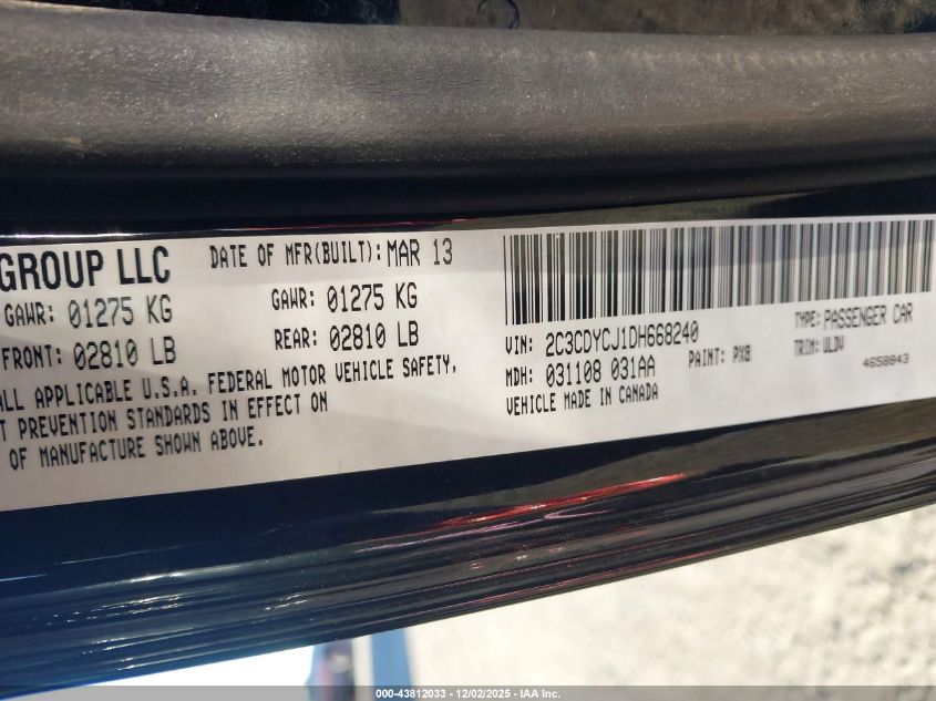 2013 DODGE CHALLENGER 2013 року Бензин, 6.4, Задний привод, vin - 2C3CDYCJ1DH668240 из США