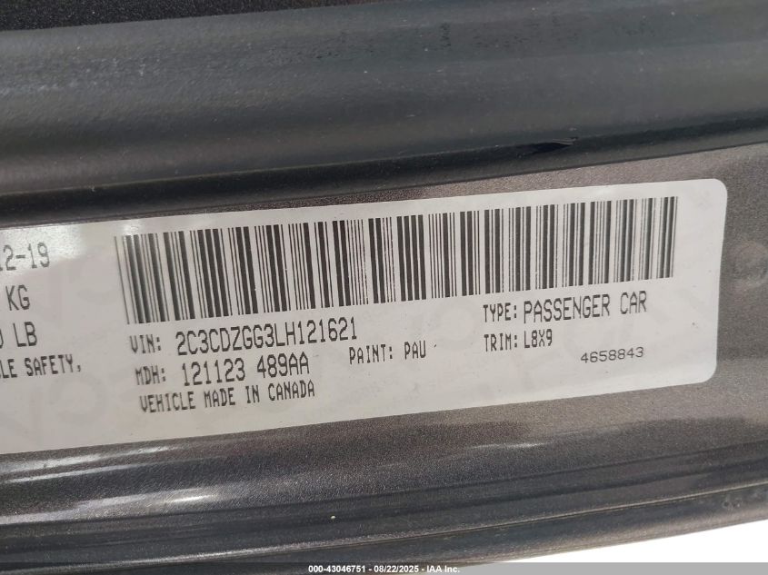 2020 DODGE CHALLENGER 2020 року Бензин, 3.6, Полный привод, vin - 2C3CDZGG3LH121621 из США