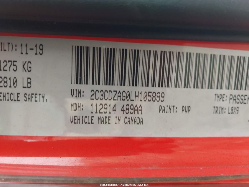 2020 DODGE CHALLENGER 2020 року Бензин, 3.6, Задний привод, vin - 2C3CDZAG0LH105899 из США