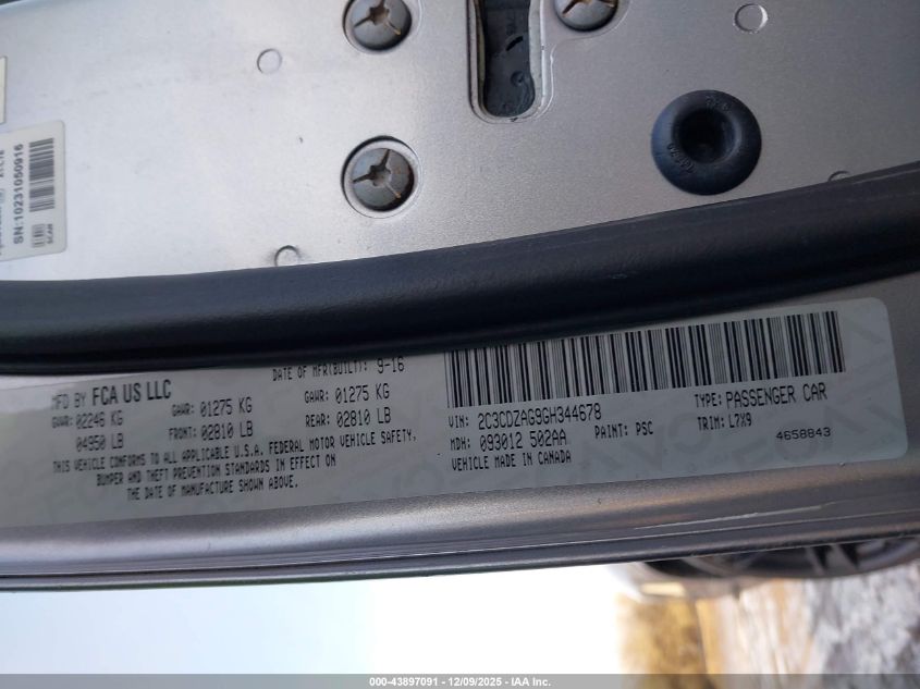 2016 DODGE CHALLENGER 2016 року Бензин, 3.6, Задний привод, vin - 2C3CDZAG9GH344678 из США