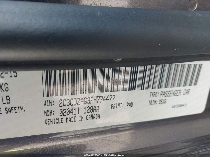 2015 DODGE CHALLENGER 2015 року Бензин, 3.6, Задний привод, vin - 2C3CDZAG3FH774477 из США