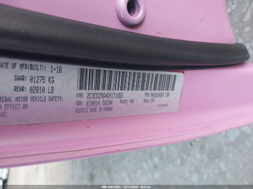 2016 DODGE CHALLENGER 2016 року Бензин, 3.6, Задний привод, vin - 2C3CDZAG4GH171653 из США