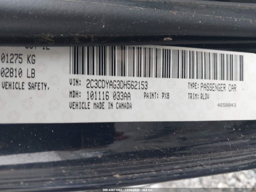 Цвет ЧерныйЦилиндры 6Привод Задний приводVIN 2C3CDYAG3DH562153Состояние Заводится и едет (проверено)Повреждения Передняя или задняя AutoRIA