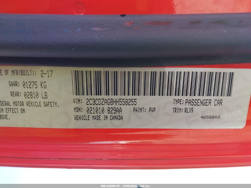 2017 DODGE CHALLENGER 2017 року Бензин, 3.6, Задний привод, vin - 2C3CDZAG8HH558255 из США