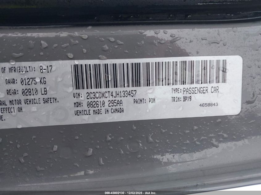 Цвет СерыйЦилиндры 8Привод Задний приводVIN 2C3CDXCT4JH133457Состояние СтационарноПовреждения Задняя левая AutoRIA