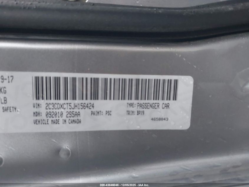 Цвет ОловянныйЦилиндры 8Привод Задний приводVIN 2C3CDXCT5JH156424Состояние СтационарноПовреждения Задняя левая AutoRIA