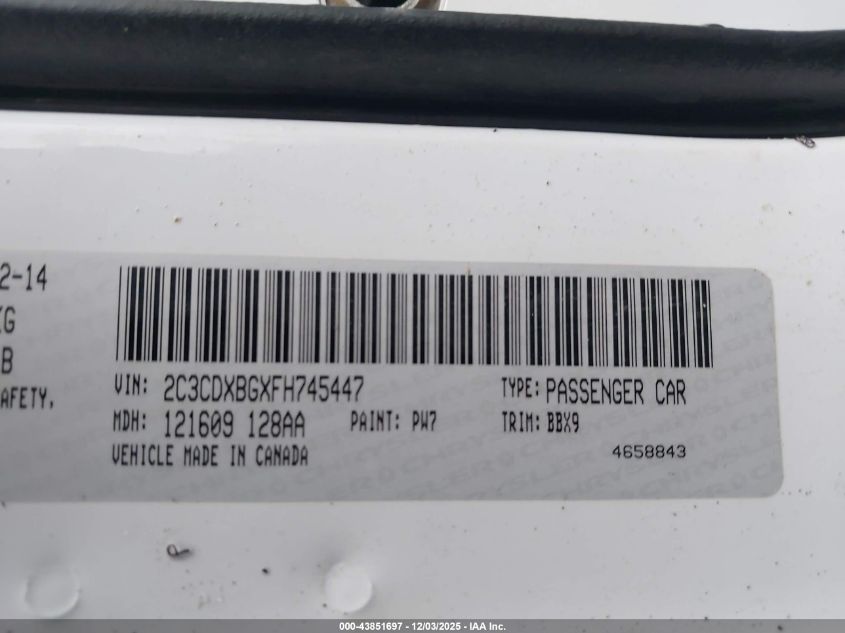 Цвет БелыйЦилиндры 6Привод Задний приводVIN 2C3CDXBGXFH745447Состояние СтационарноПовреждения Передняя или задняя AutoRIA