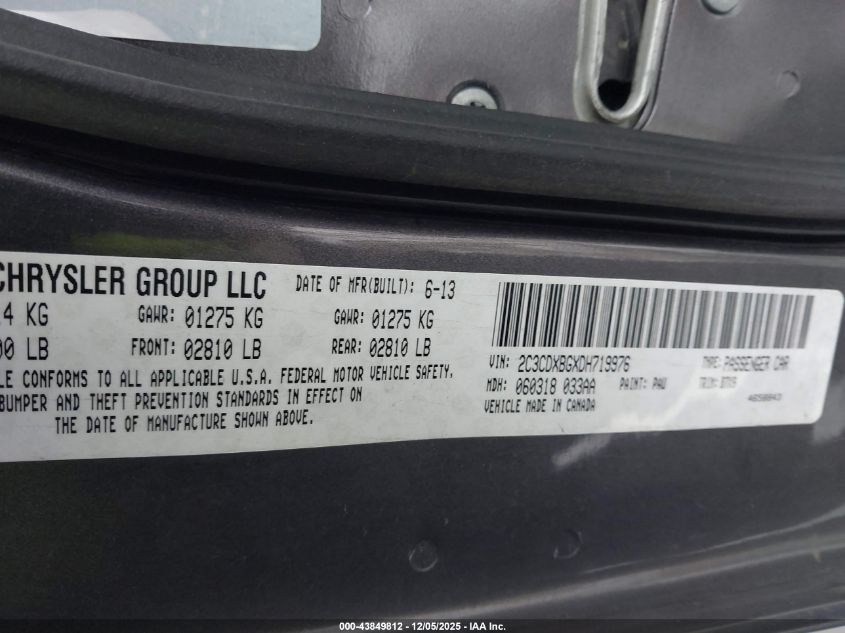 Цвет СерыйЦилиндры 6Привод Задний приводVIN 2C3CDXBGXDH719976Состояние Заводится и едет (проверено)Повреждения Передняя или задняя AutoRIA