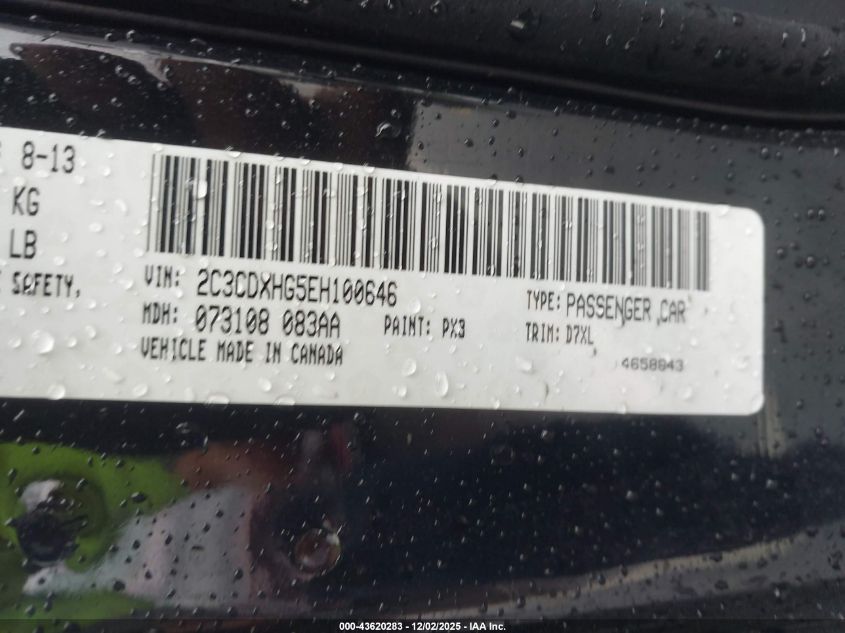 Цвет ЧерныйЦилиндры 6Привод Задний приводVIN 2C3CDXHG5EH100646Состояние СтационарноПовреждения Передняя или задняя AutoRIA