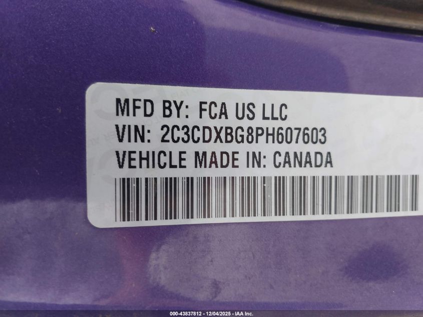 Цвет ФиолетовыйЦилиндры 6Привод Задний приводVIN 2C3CDXBG8PH607603Состояние Заводится и едет (проверено)Повреждения Передняя или задняя