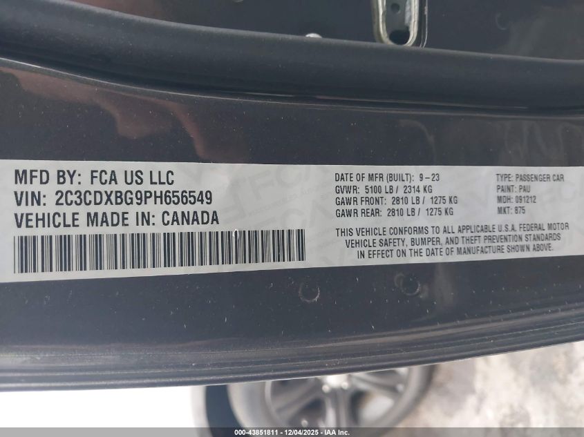 2023 DODGE CHARGER 2023 року Бензин, 3.6, Задний привод, vin - 2C3CDXBG9PH656549 из США