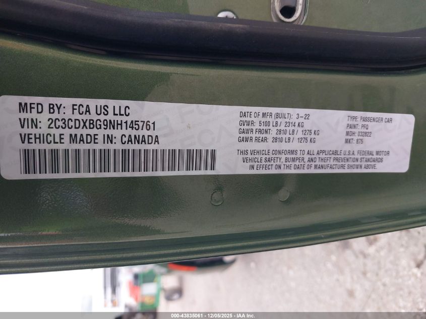 2022 DODGE CHARGER 2022 року Бензин, 3.6, Задний привод, vin - 2C3CDXBG9NH145761 из США