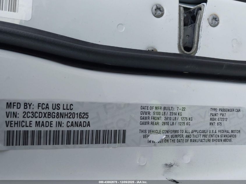 2022 DODGE CHARGER 2022 року Бензин, 3.6, Задний привод, vin - 2C3CDXBG8NH201625 из США