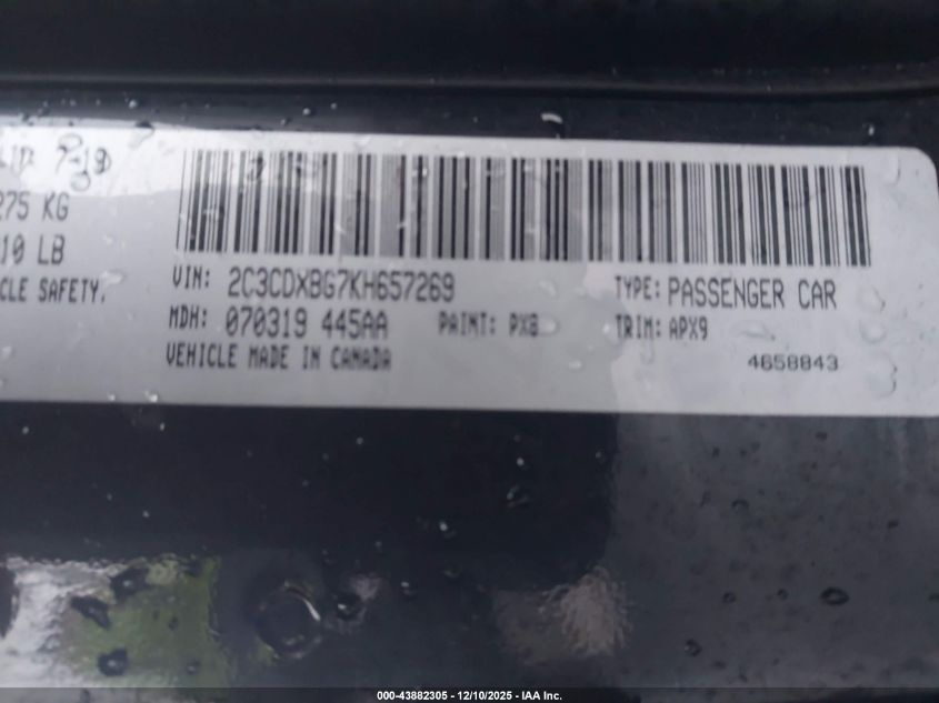 Цвет ЧерныйЦилиндры 6Привод Задний приводVIN 2C3CDXBG7KH657269Состояние Заводится и едет (проверено)Повреждения Передняя левая AutoRIA