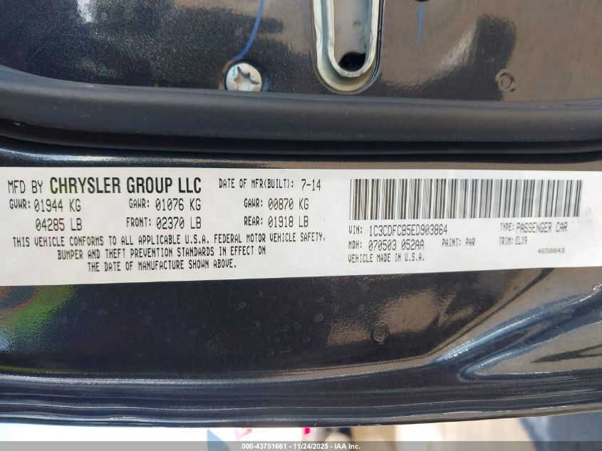 2014 DODGE DART 2014 року Бензин, 2.4, Передний привод, vin - 1C3CDFCB5ED903864 из США