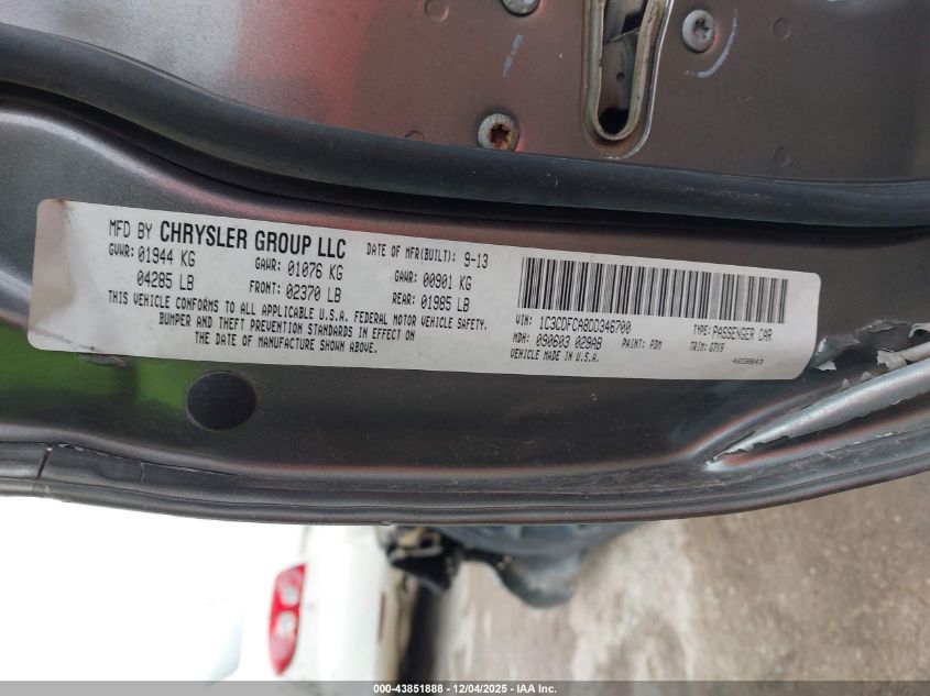 Цвет СерыйЦилиндры 4Привод Передний приводVIN 1C3CDFCA8DD346700Состояние СтационарноПовреждения Левая сторона AutoRIA