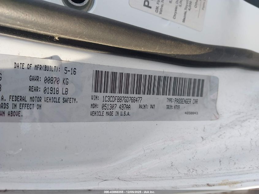 Цвет БелыйЦилиндры 4Привод Передний приводVIN 1C3CDFBB7GD766477Состояние Заводится и едет (проверено)Повреждения Передняя или задняя AutoRIA