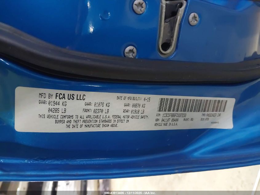 2015 DODGE DART 2015 року Бензин, 2.4, Передний привод, vin - 1C3CDFBB6FD337233 из США