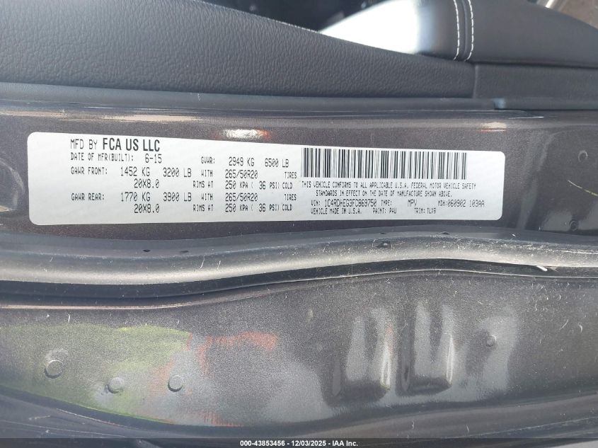 Цвет БежевыйЦилиндры 6VIN 1C4RDHEG3FC869750Состояние Заводится и едет (проверено)Повреждения Передняя или задняя AutoRIA