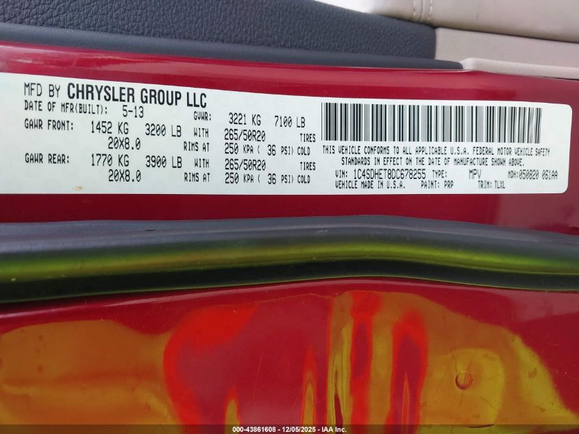 2013 DODGE DURANGO 2013 року Бензин, 5.7, , vin - 1C4SDHET8DC678255 из США