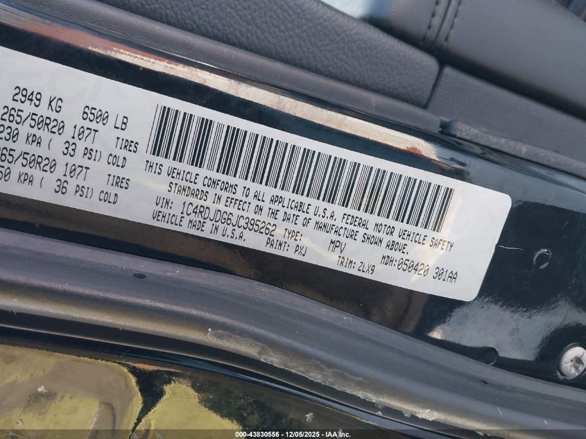 Цвет ЧерныйЦилиндры 6Привод Полный приводVIN 1C4RDJDG6JC395262Состояние СтационарноПовреждения Передняя или задняя AutoRIA