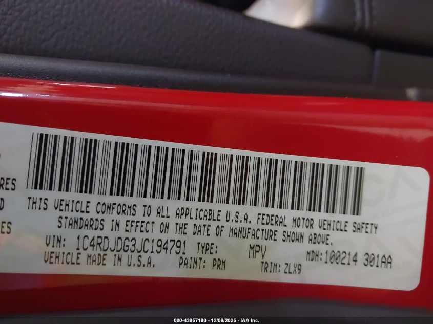 Цвет КрасныйЦилиндры 6Привод Полный приводVIN 1C4RDJDG3JC194791Состояние Заводится и едет (проверено)Повреждения Задняя праваяДата аукциона 2025-12-18 AutoRIA