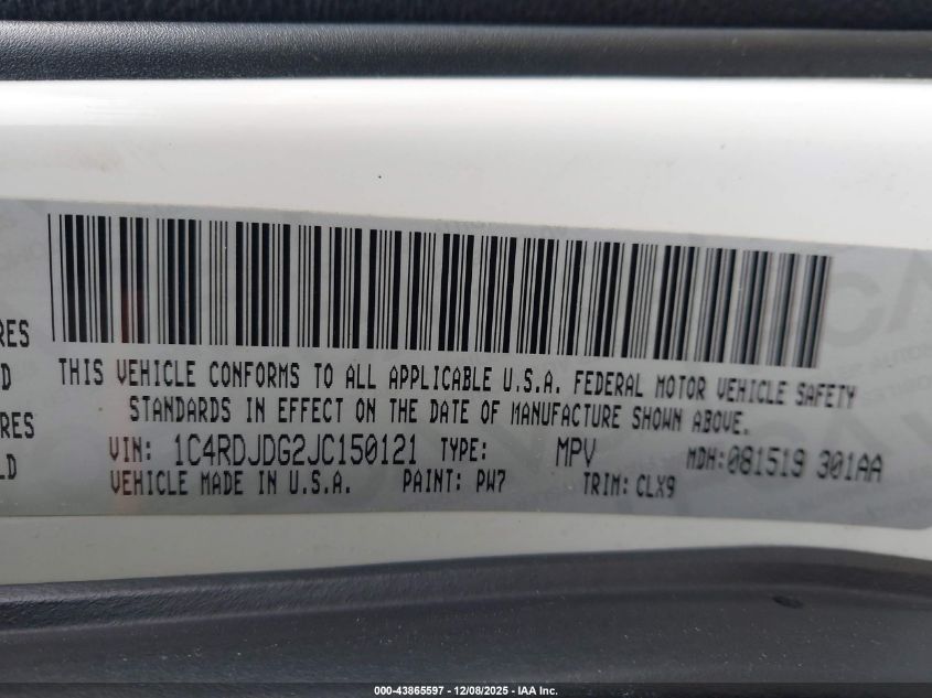 2018 DODGE DURANGO 2018 року Бензин, 3.6, Полный привод, vin - 1C4RDJDG2JC150121 из США