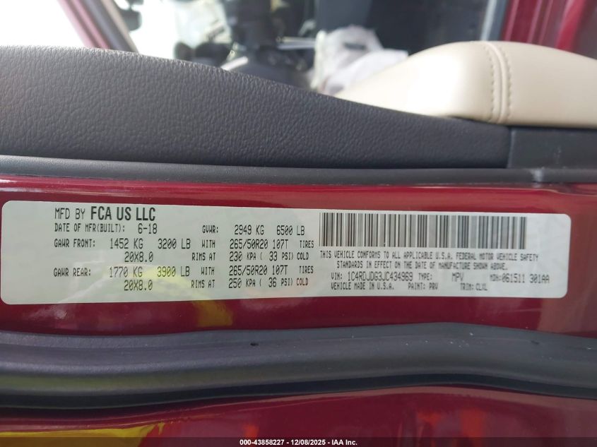 Цвет БургундияЦилиндры 6Привод Полный приводVIN 1C4RDJDG3JC434969Состояние СтационарноПовреждения Передняя или задняя AutoRIA