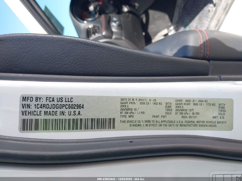 2023 DODGE DURANGO 2023 року Бензин, 3.6, Полный привод, vin - 1C4RDJDG0PC602964 из США