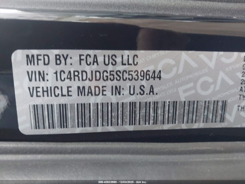 2025 DODGE DURANGO 2025 року Бензин, 3.6, Полный привод, vin - 1C4RDJDG5SC539644 из США
