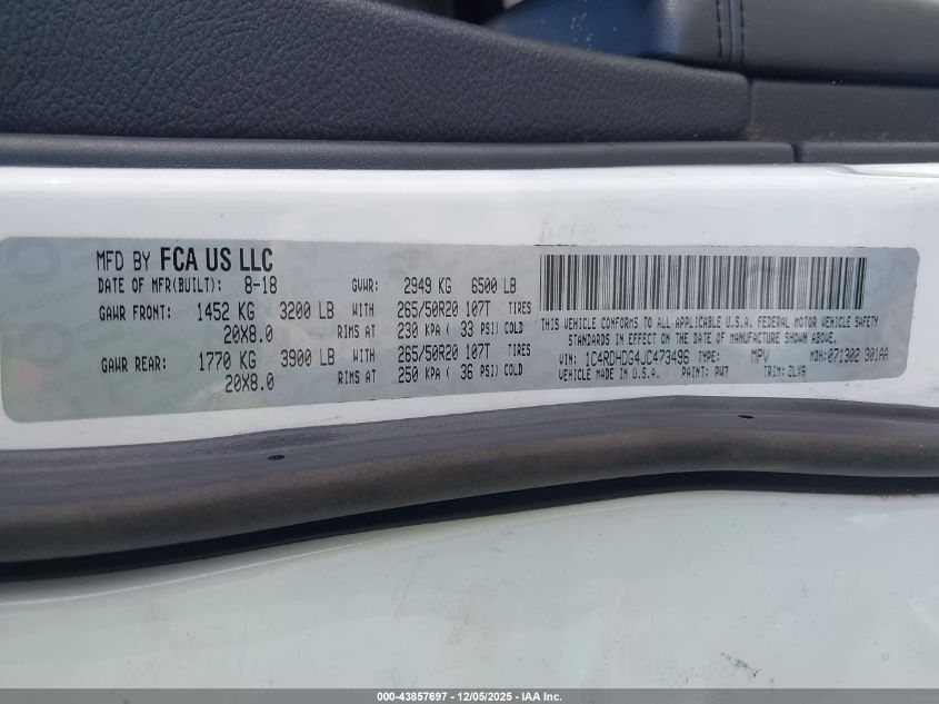 Цвет БелыйЦилиндры 6VIN 1C4RDHDG4JC473496Состояние СтационарноПовреждения Передняя или задняя AutoRIA