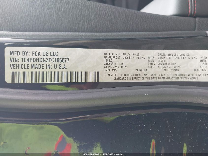 2026 DODGE DURANGO 2026 року Бензин, 3.6, , vin - 1C4RDHDG3TC166677 из США