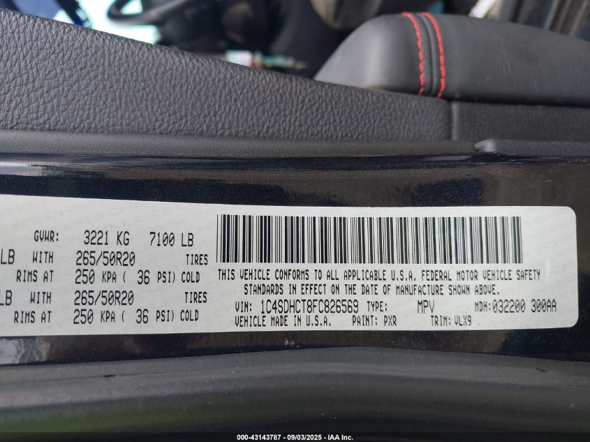 Цвет ЧерныйЦилиндры 8VIN 1C4SDHCT8FC826569Состояние СтационарноПовреждения ВандализмДата аукциона 2025-12-10 AutoRIA
