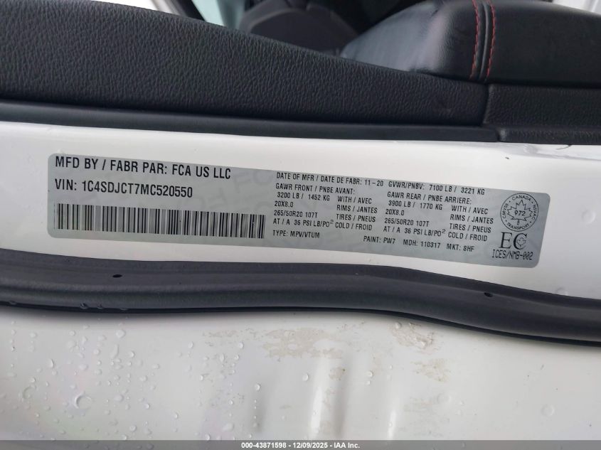 Цвет БелыйЦилиндры 8Привод Полный приводVIN 1C4SDJCT7MC520550Состояние СтационарноПовреждения Передняя и задняя AutoRIA