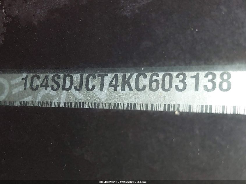 Цвет ЧерныйЦилиндры 8Привод Полный приводVIN 1C4SDJCT4KC603138Состояние НеизвестноПовреждения Левая сторона AutoRIA