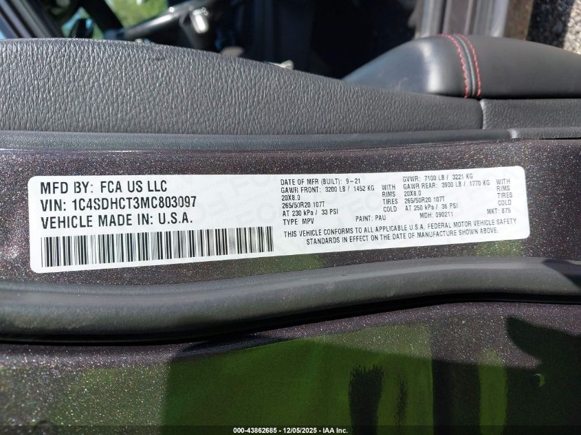 2021 DODGE DURANGO 2021 року Бензин, 5.7, , vin - 1C4SDHCT3MC803097 из США