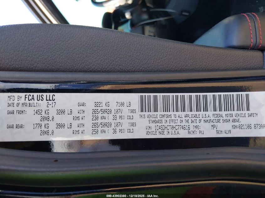 2017 DODGE DURANGO 2017 року Бензин, 5.7, , vin - 1C4SDHCT0HC774616 из США