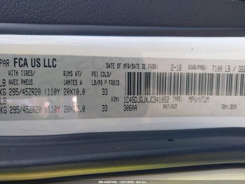2018 DODGE DURANGO 2018 року Бензин, 6.4, Полный привод, vin - 1C4SDJGJXJC341052 из США