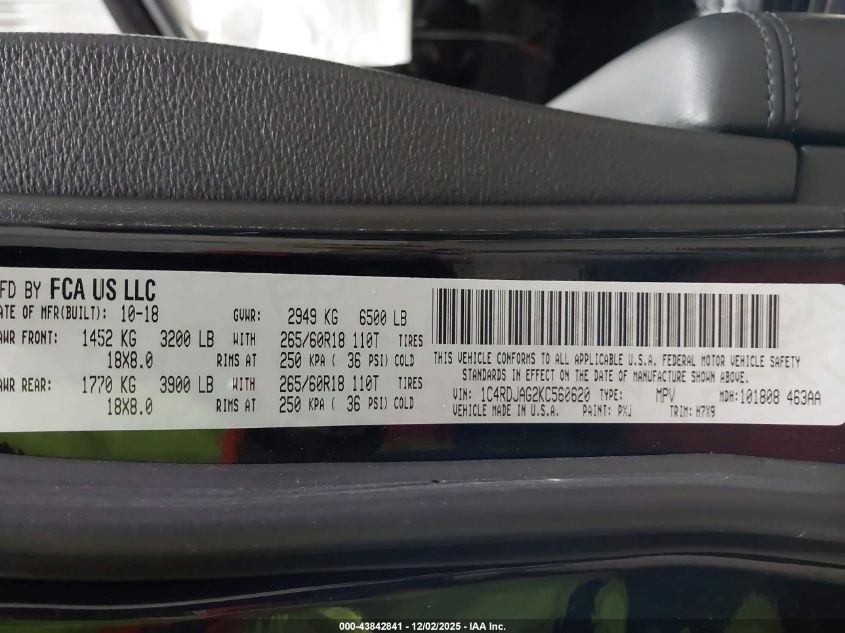 Цвет ЧерныйЦилиндры 6Привод Полный приводVIN 1C4RDJAG2KC560620Состояние Заводится и едет (проверено)Повреждения Левая сторона AutoRIA