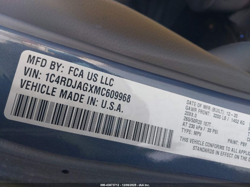 2021 DODGE DURANGO 2021 року Бензин, 3.6, Полный привод, vin - 1C4RDJAGXMC609968 из США