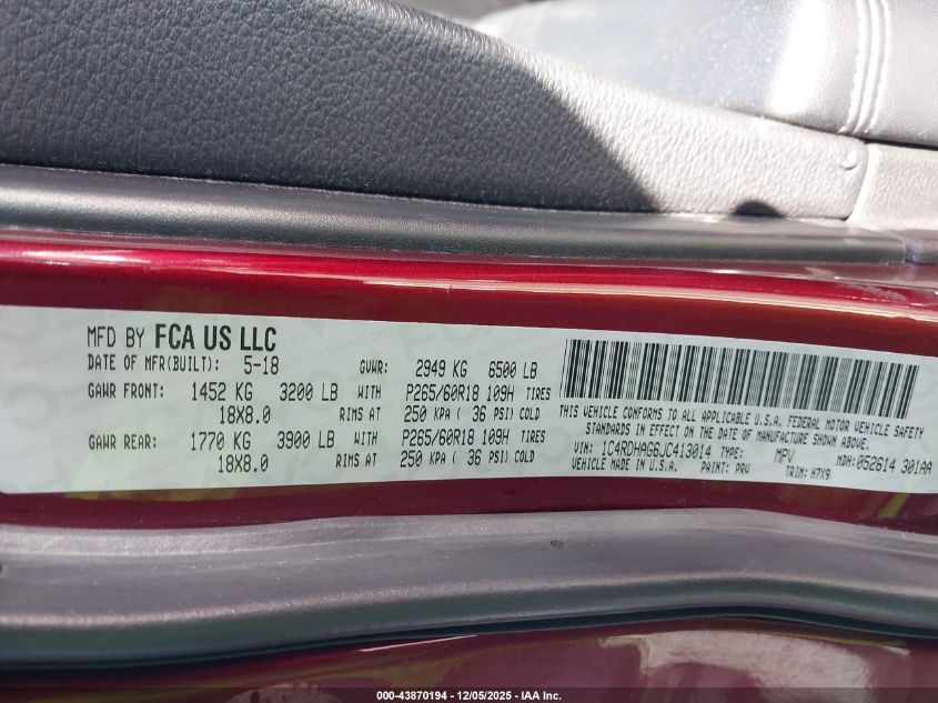Цвет БургундияЦилиндры 6VIN 1C4RDHAG6JC413014Состояние ЗаводитсяПовреждения Правая сторона AutoRIA