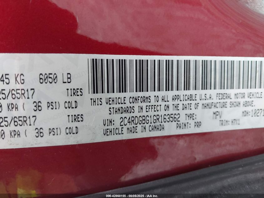 2016 DODGE GRAND CARAVAN 2016 року Бензин, 3.6, Передний привод, vin - 2C4RDGBG1GR163562 из США
