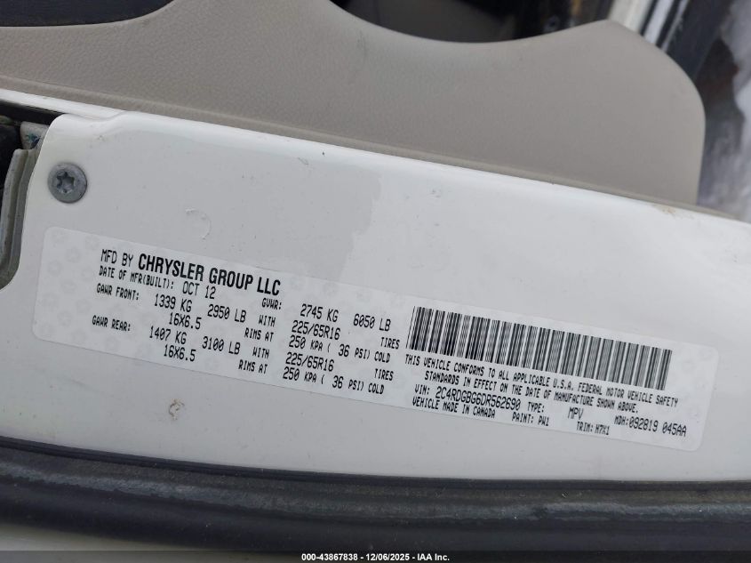 Цвет БелыйЦилиндры 6Привод Передний приводVIN 2C4RDGBG6DR562690Состояние СтационарноПовреждения Обычный износ AutoRIA